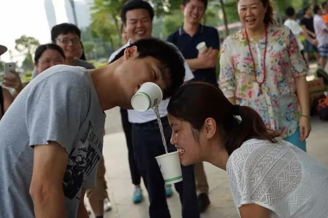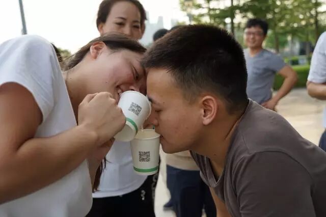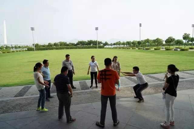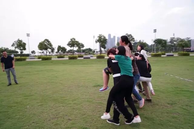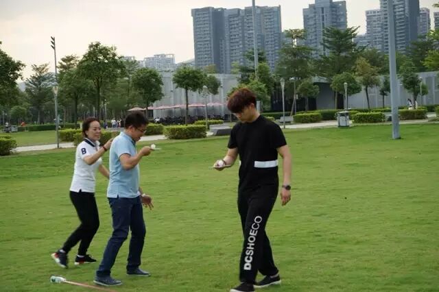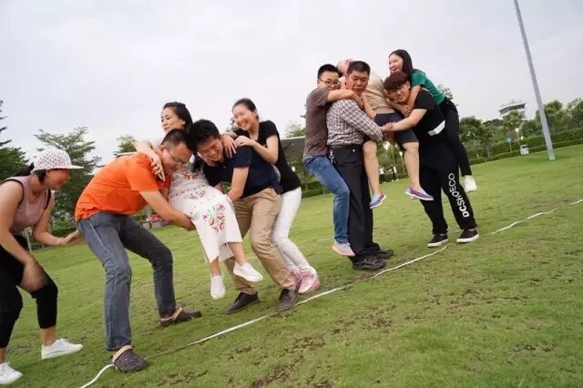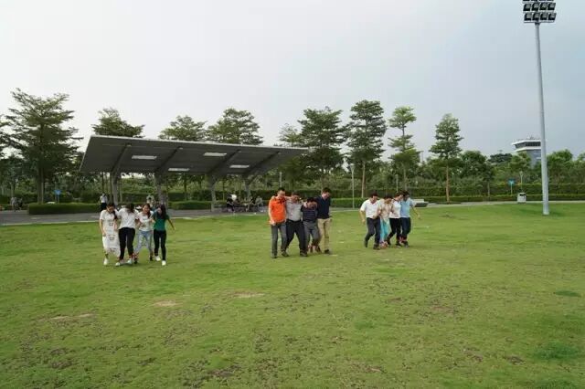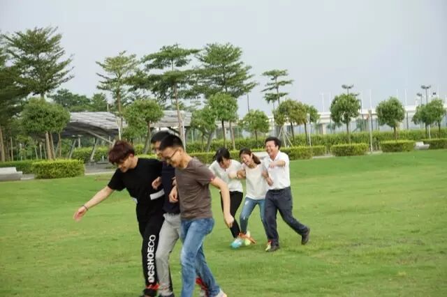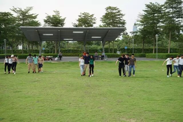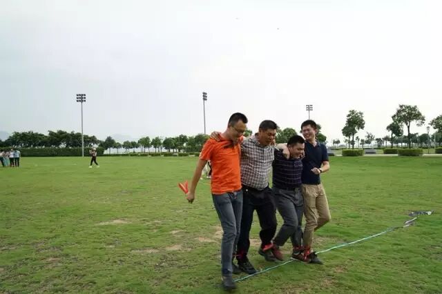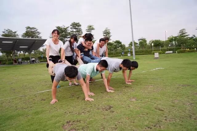 最后一项活动由梁经理给出了一个难度颇高的游戏——十人八腿前行,组成的两支队伍经过讨论思考,脑洞大开最终摆出了如下造型: