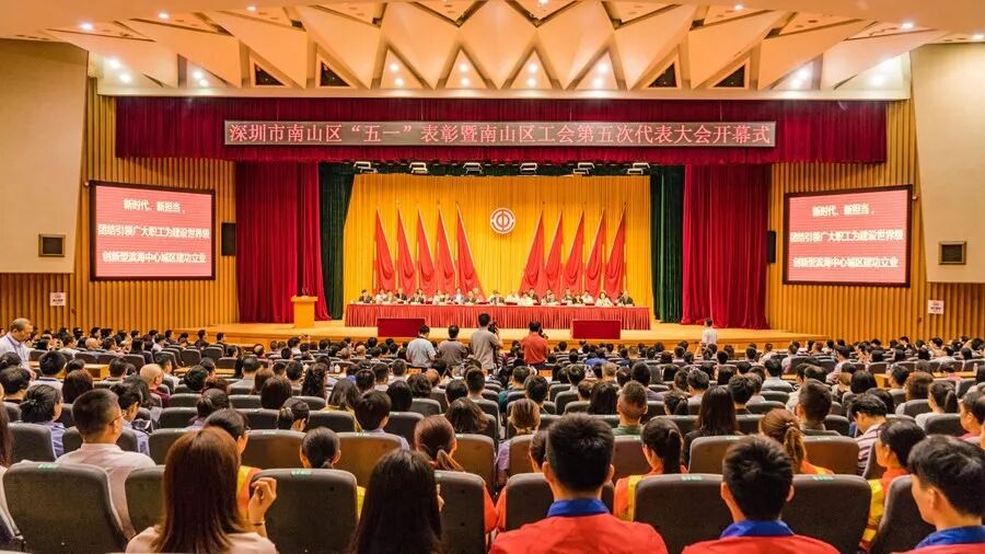 南山区委书记王强、区长曾湃,深圳市总工会副主席冯艳玲、区政协主席陈军,区人大常委会主任麦林光、区总工会主席路玉萍、区组织部部长饶红蕾等领导以及南山区工会第五次代表大会正式代表263名,区直机关处以上单位负责人、机关干部代表、各街道党工委领导、区总工会历届委员代表、区各级劳模代表,各街道办事处、社区工作站、部分企事业单位工会干部、一线职工代表约700人参加了会议。